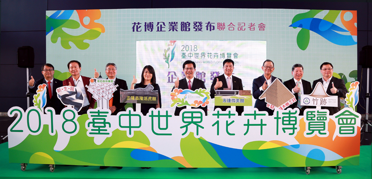 友達(dá)光電落實(shí)社會(huì)參與、回饋在地,參與臺中花卉博覽會(huì) (中:臺中市長林佳龍,右四:友達(dá)光電董事長暨執(zhí)行長彭雙浪) |