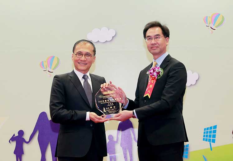 友達榮獲「105 年國家永續發展獎」之「永續企業獎」,並由友達總經理暨營運長蔡國新 (右) 代表領獎
